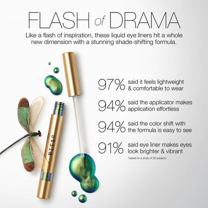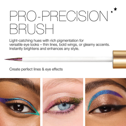 These liquid eye liners hit a whole new eye dimension with a stunning shade-shifting formula. Richly pigmented with chameleon-like pearls and a metallic chrome finish for colors that play out right before your eyes. Bold and brilliant for a flash of drama and transforming hues that hit different at every angle. Choose from three multi-shade/multi-hued experiences.