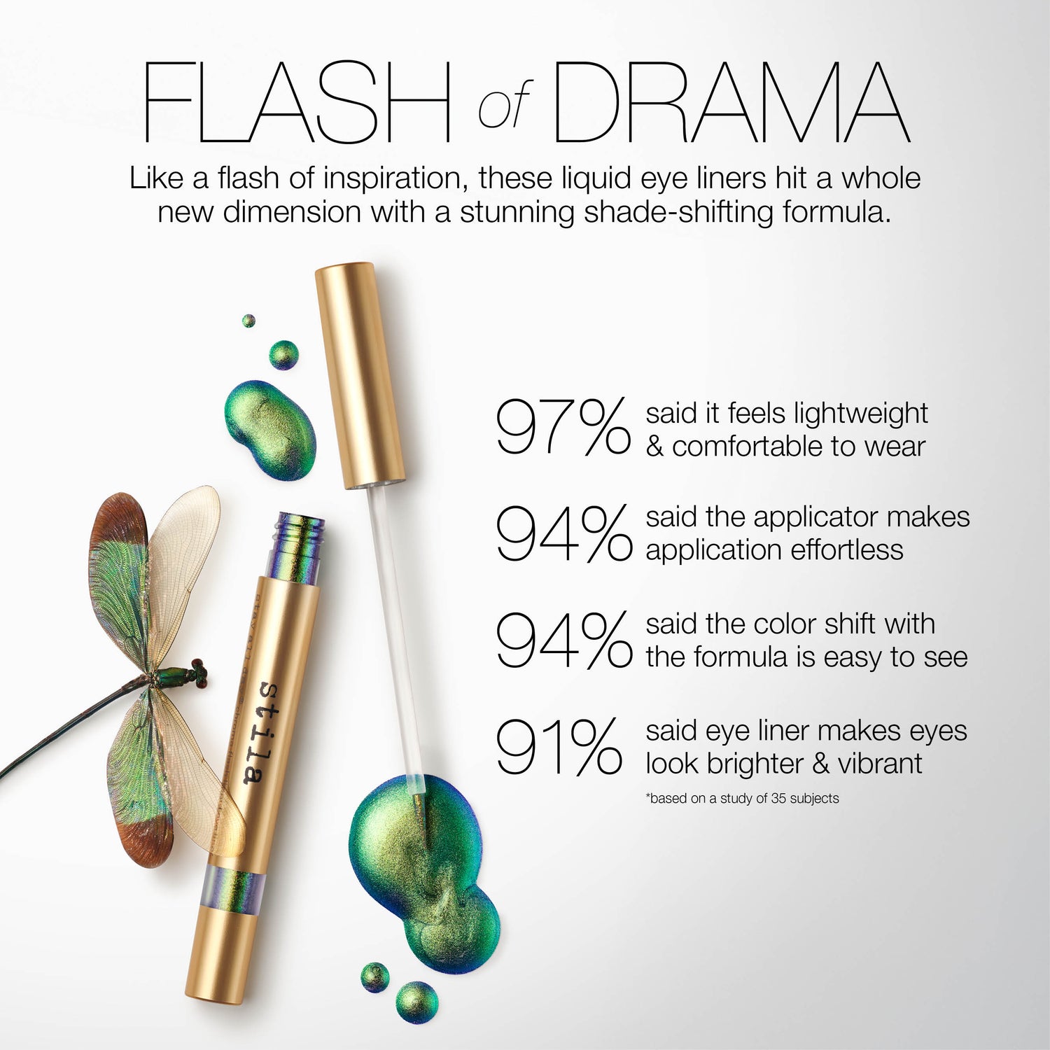 • 97%* said eye liner feels lightweight and is comfortable to wear.